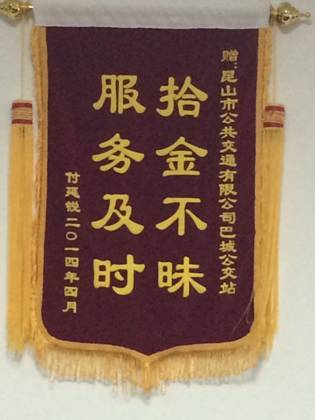 4月26日,一位乘客將一面錦旗送到巴城客運(yùn)站二分調(diào)度室,感謝拾金不昧駕駛員。原來(lái)在4月11號(hào),失主乘坐117路蘇EP6021王雪良師傅的車(chē)時(shí),不慎將皮包忘在車(chē)上 |