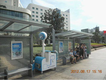 移動(dòng)噴霧降溫系統(tǒng)進(jìn)市區(qū)讓候車市民享受涼爽