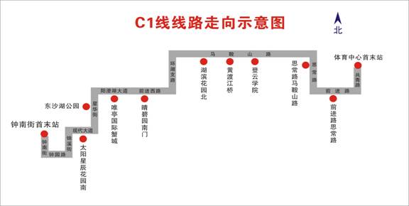 根據(jù)年度公交發(fā)展計劃,我公司于2012年12月31日開通連接蘇州軌道1號線的城際毗鄰公交C1線(鐘南街首末站—體育中心首末站),線路實行全程一票制:2元/票,首末班為:體育中心首站6:00—21:00、鐘南街首末站7:00—22:30,正常間隔20—30分鐘。(附運(yùn)行走向圖)