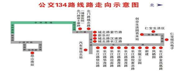 根據(jù)年度公交發(fā)展計劃,我公司自2015年8月16日起調整公交134路,調整后取消友誼路、迎賓路、北門路段走向,具體走向為塔基路、立基路、長江路、城北路、北門路、中環(huán)西線、中環(huán)南線、小澞河路、昆山南站,同步取消“友誼路富楊路”、“陸楊菜場”、“三角場”、“陸楊”、“換新小區(qū)”、“國際模具城”、“新生首末站”??空?,首末班時間:6:00-19:00,班次間隔:25-35分鐘,票價由原一票制調整為1-6元。調整后長江路沿線市民通過公交134路可到達汽車客運北站、昆山南站,于北門路換乘1路到達城區(qū)。(后附運行走向圖)