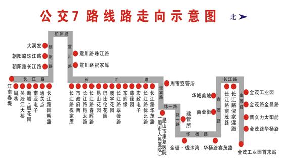 為方便周市鎮(zhèn)金茂工業(yè)園區(qū)員工通勤出行,覆蓋公交盲區(qū),自2016年6月1日起調(diào)整公交7路,調(diào)整后公交7路始發(fā)點由新久力太陽能延伸至金茂工業(yè)園首末站,覆蓋金茂路東部區(qū)域,調(diào)整后運行走向如下圖: