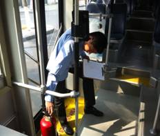公司三支安全監(jiān)控組,群策群力,全心全力抓好兩項活動的開展。營運安全監(jiān)控組:負責對各線路營運紀律、駕乘(服)人員安全動態(tài)等進行全面監(jiān)控;場站安保監(jiān)控組:負責對場站管理人員以及各場站(包括鄉(xiāng)鎮(zhèn)站、首末站)、租賃屋、駕校、加油站、金庫等重要場所進行全面監(jiān)控;生產安保監(jiān)控組:負責對維修人員以及生產車間、?;愤\輸車輛、車輛安全技術狀況及設施設備(指所有車輛)進行全面監(jiān)控。公司對查出的安全隱患問題,均發(fā)出整改通知書,責令限期整改;對查獲的違規(guī)違法駕乘(服)人員,根據情節(jié)分別采取批評教育、處罰以及培訓的方式進行相應處理。