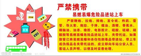 (二)加強(qiáng)乘車人員的檢查,避免乘客攜帶易燃易爆等違禁物品(見下圖)造成事件發(fā)生。