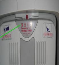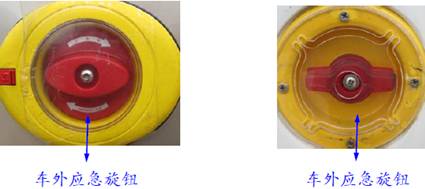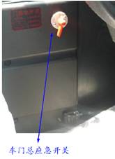 第二處設(shè)置在乘客門內(nèi)的上部,操作方法:打開防護(hù)罩,順時針旋轉(zhuǎn)90度,門泵氣缸泄壓。按照車門開啟方向推開車門。