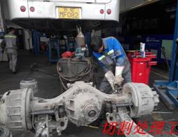 經(jīng)過市公交公司機(jī)務(wù)管理部門技術(shù)人員商討,并及時(shí)提出了具體的修理方案。修理分公司第一時(shí)間組織修理人員對(duì)發(fā)現(xiàn)有氣囊車橋定位支架開裂情況的車輛進(jìn)行維修。在客車廠家專門技術(shù)人員的一線指導(dǎo)下,車輛的車橋拆裝、問題部件的切割處理,新定位支架的焊接等一系列工作有序平穩(wěn)進(jìn)行。